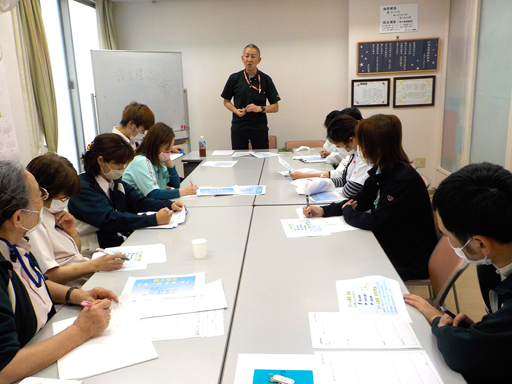 ドリーム陶都では、仕事を遂行する上で求められる知識の習得、スキルアップ、質の良いサービス提供を行う為に新人研修をはじめ、医療的研修、感染予防、事故防止対策、褥瘡対策などさまざまな研修を毎月開催しております。また、介護技術や看取りケアなどご家族様向けの研修も行っておりますのでぜひともご参加下さい。